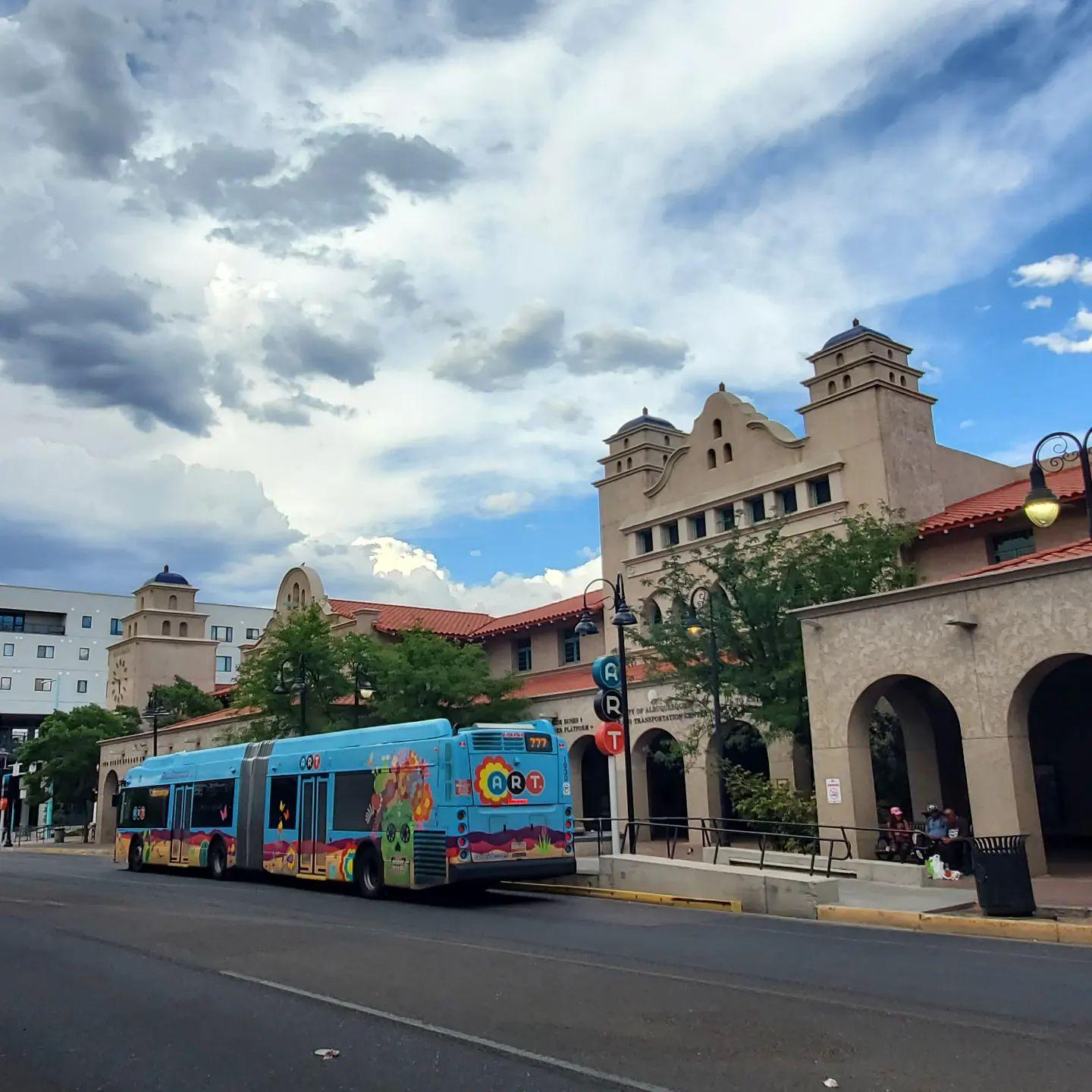 An ART bus arrives at Alvarado, where it interchanges with Rail Runner, Amtrak, and Greyhound Bus Lines.