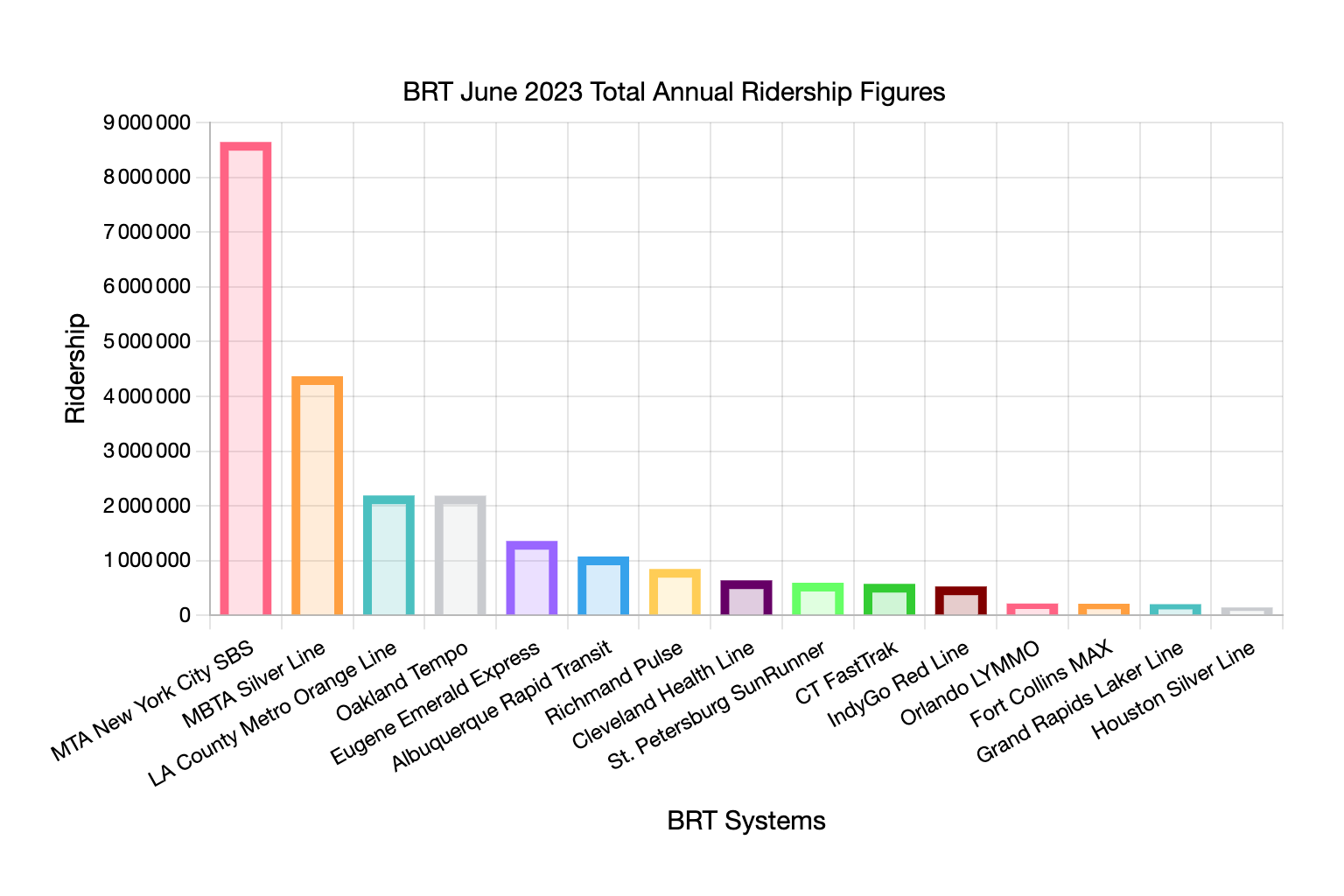 Graph situating ART’s ridership with other BRT networks in the United States*