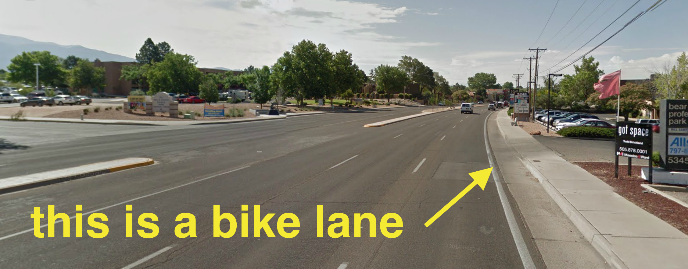 There’s a diversity of knowledge about bike infrastructure among Burqueños. Some confuse lanes and trails, others pointed out that we didn’t actually show buffered lanes in our April Fools photoshop job. So let’s clear some things up! We appreciate the Mayors supportive words but we crave more than just trails here in Albuquerque.
