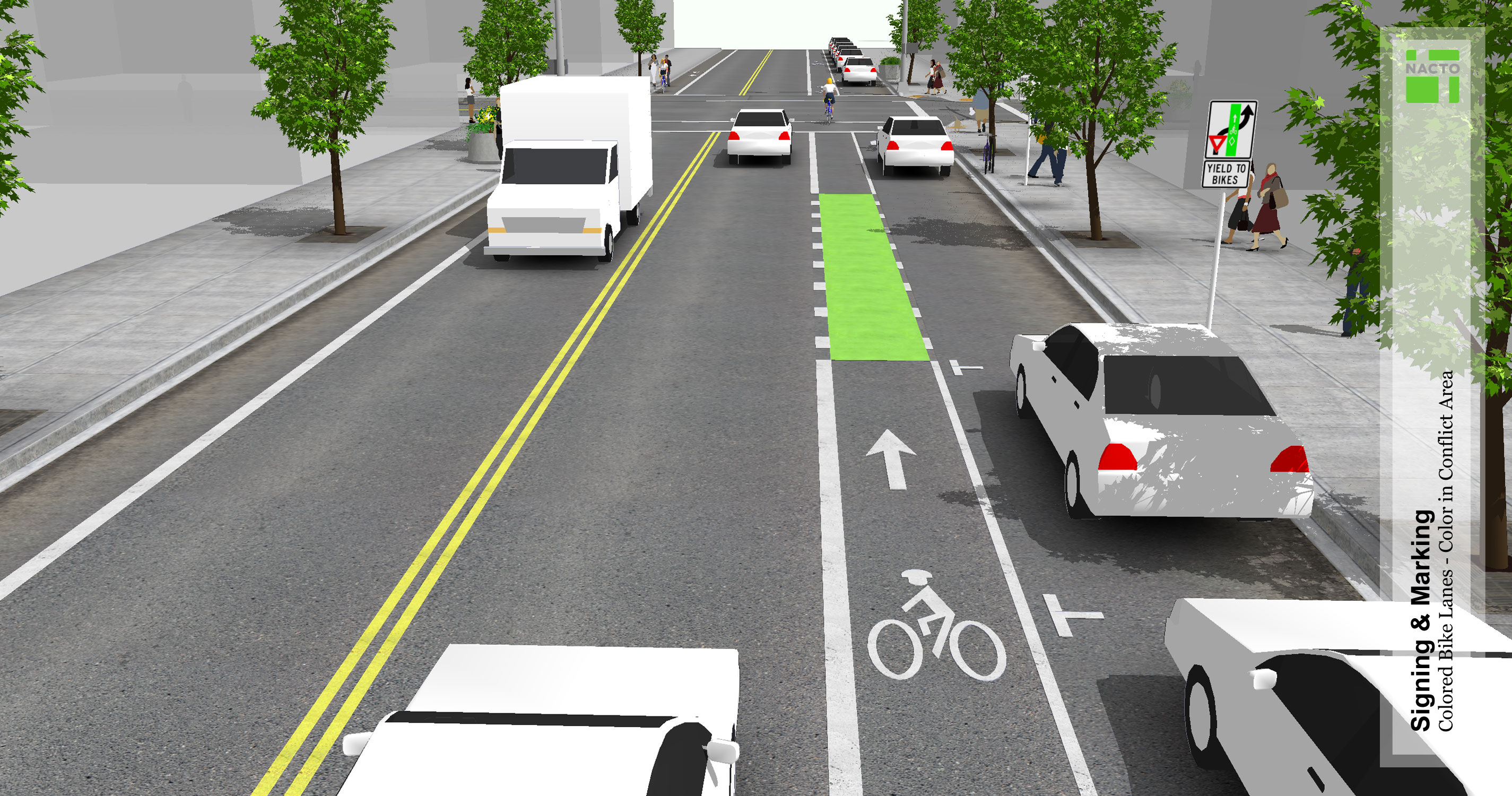 These types of facilities are being implemented across the country. The premise: when bike lanes cross intersections or driveways, they can blend into the street. Coloration can help to distinguish and highlight the existence of a lane.