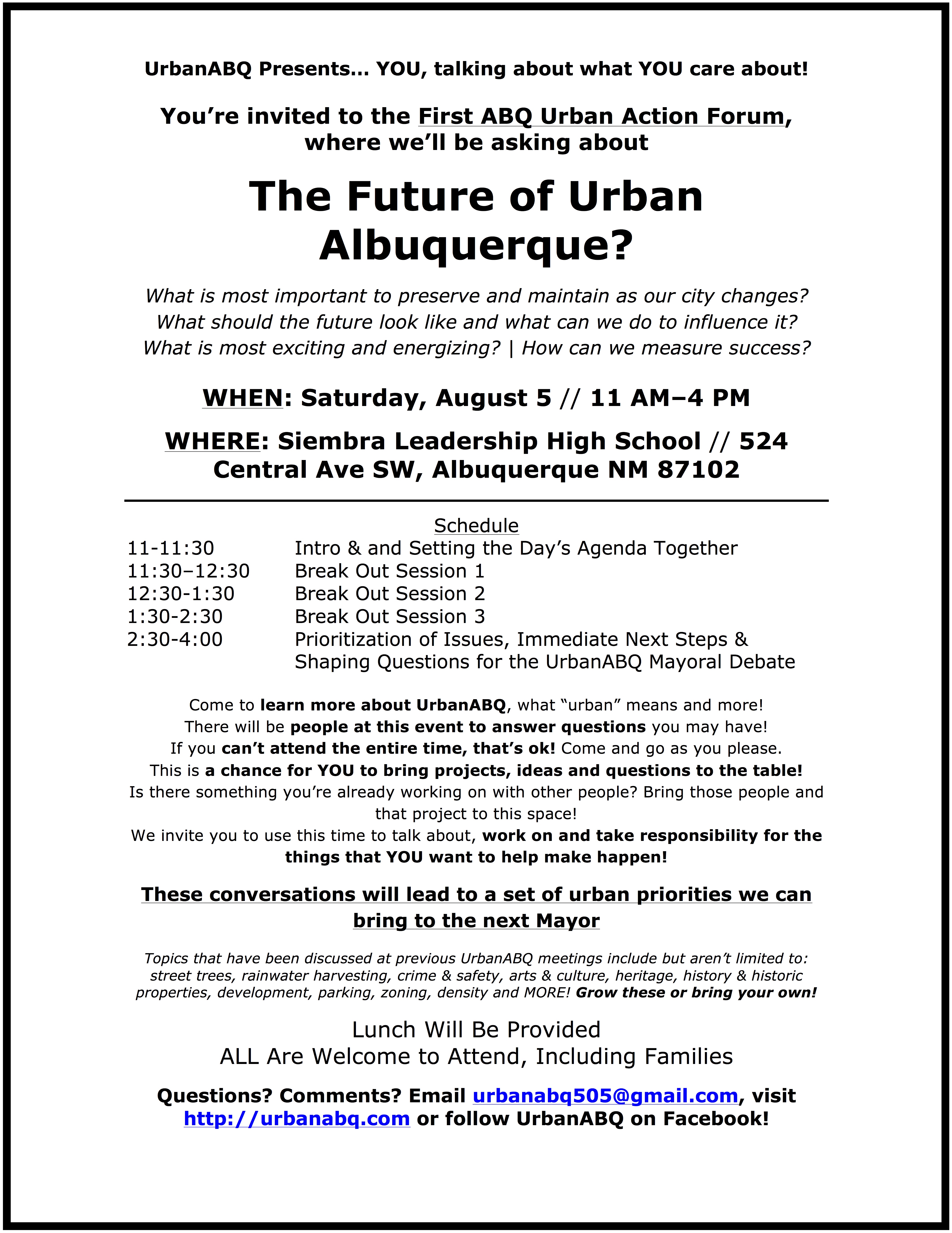 Join us at our first ever Urban Albuquerque Action Forum!