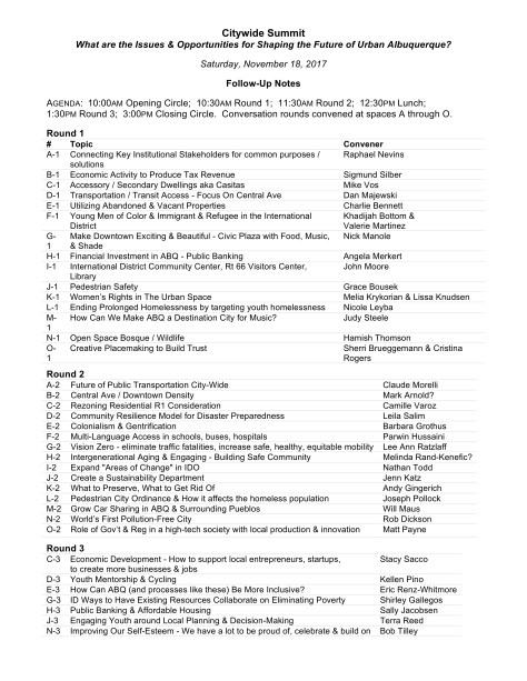 Below are the different topics that arose at the Citywide Summit, the notes for all of the conversations and more!
