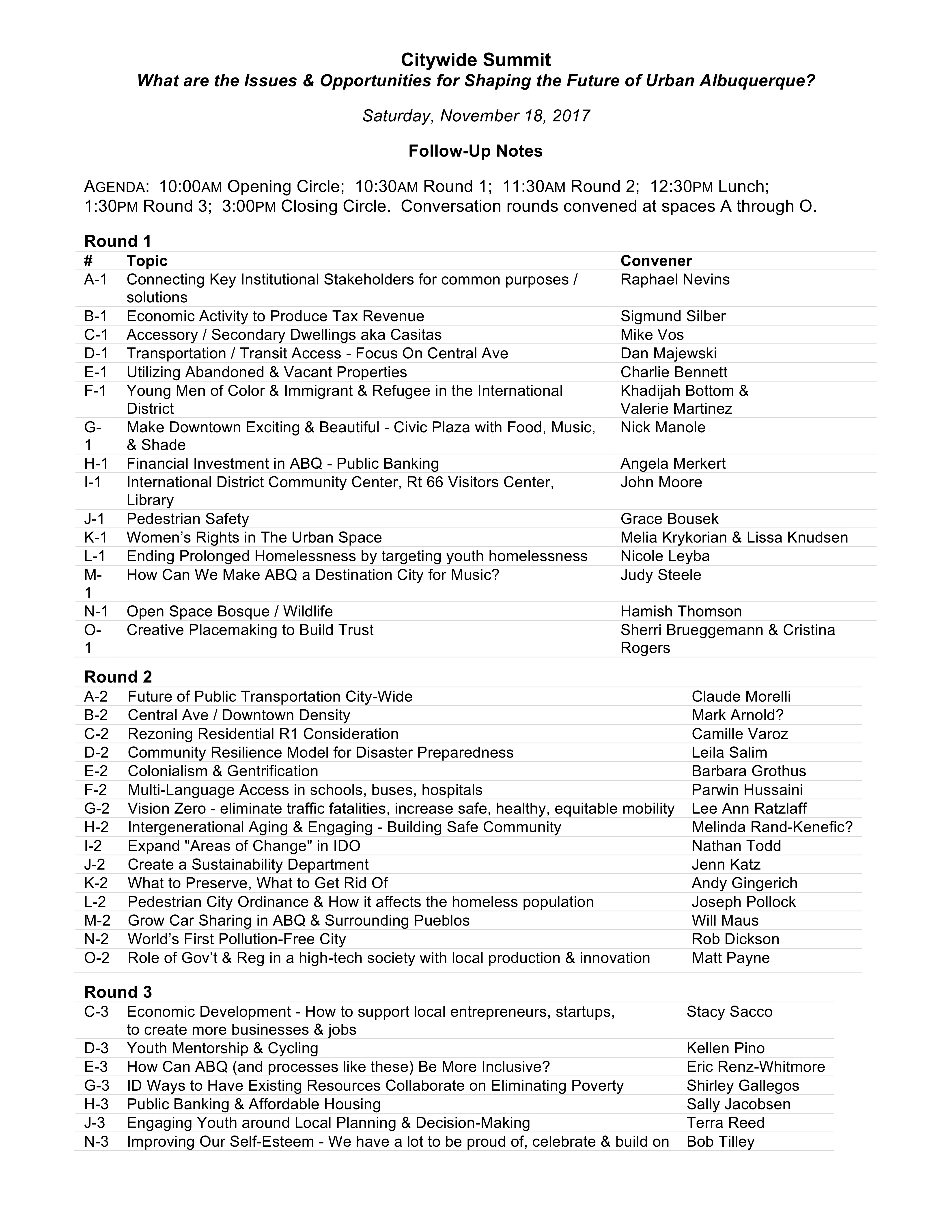 Below are the different topics that arose at the Citywide Summit, the notes for all of the conversations and more!